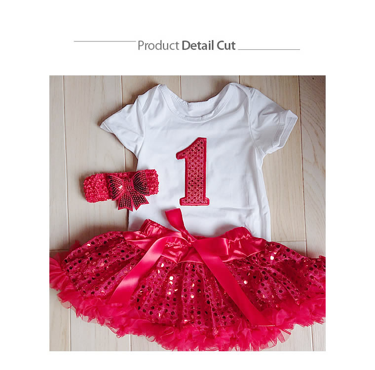 3点セット☆ハーフバースデーや誕生日☆ベビー用ホワイトロンパースとレッドスパンコールチュチュとヘアバンド(NB 3M 6M 12M 新生児 3ヶ月 6ヶ月 12ヶ月 1歳 1才 2歳 2才 2T 女の子用)PRWS