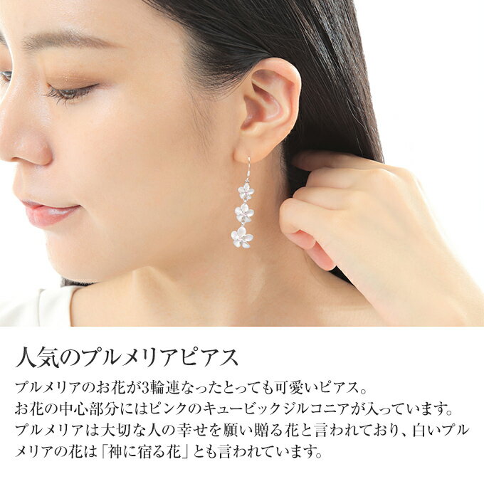 ハワイアンジュエリー ピアス 【クーポン有】 シルバー925 ピンク 3連 ロング フック プルメリア 花 波 レディース プレゼント ギフト 誕生日 記念日 【送料無料】 おしゃれ 人気 イヤリング 母の日 花以外