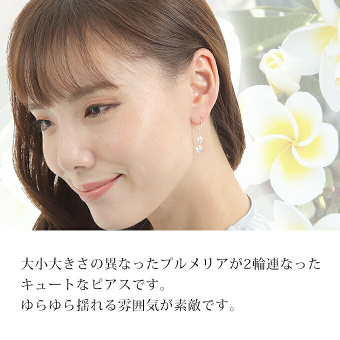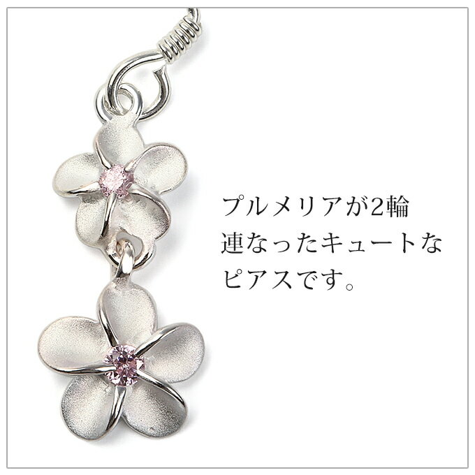 ハワイアンジュエリー ピアス クーポン有 シルバー925 ピンク ジルコニア | 2連 フックタイプ プルメリア 花 波 レディース イヤリング 送料無料 母の日 花以外