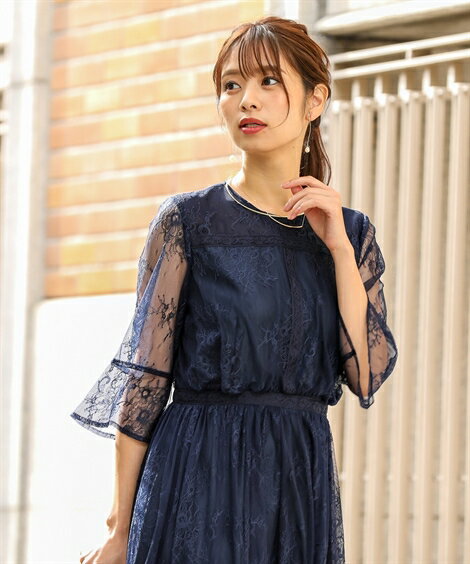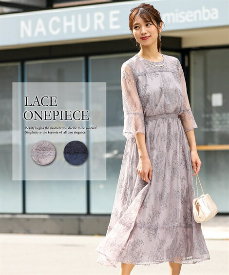 ドレス パーティー 大きいサイズ レディース クロスはしご レース使い 総レース ワンピース 結婚式 二次会 お呼ばれ セミフォーマル対応 披露宴 謝恩会 同窓会 卒業式 パーティドレス 可愛い 大人 20代 30代 40代 体形カバー ネイビー/パープル 4L/5L/6L ニッセン nissen