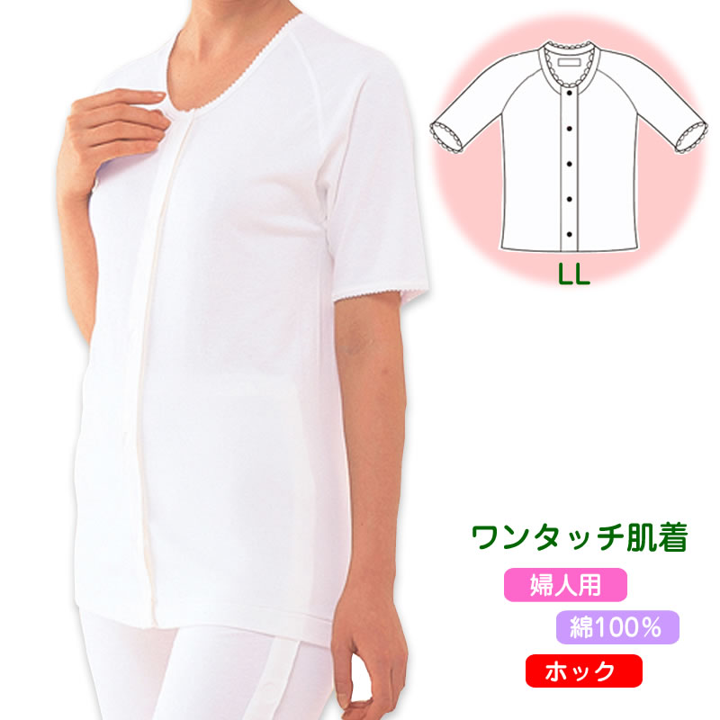 前開き 肌着 ワンタッチ肌着 婦人前開き半袖(夏用) CH-3 LLサイズ 神戸生絲レディース インナー 肌着 女性用 下着 高齢者 肌着 介護 衣類