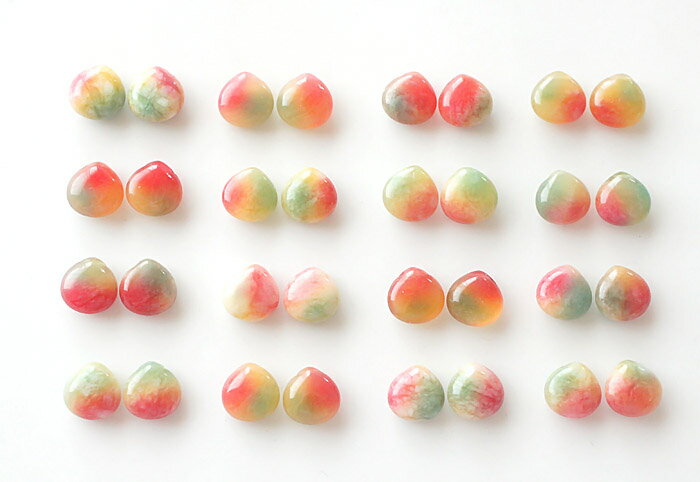色のミックス具合には個体差がありますが、グリーンとレッドはどの粒も綺麗に見ることができ、どのミックス具合にも個性と味があって、とても愛らしい天然石ピアスです。